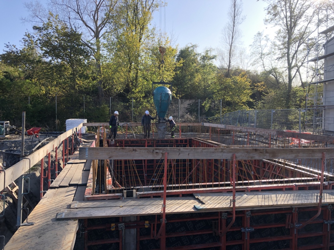 Door het heiwerk en de fundaties uit te voeren als een collectieve opdracht zijn aanzienlijke kosten bespaard. De fundaties zijn geschakeld uitgevoerd. Er is gebruik gemaakt van diverse heisystemen, afgestemd op de mogelijkheden en kosten. Alle betonwerk is geheel in eigen beheer uitgevoerd, incl. montage van prefab kelders en vloeren.