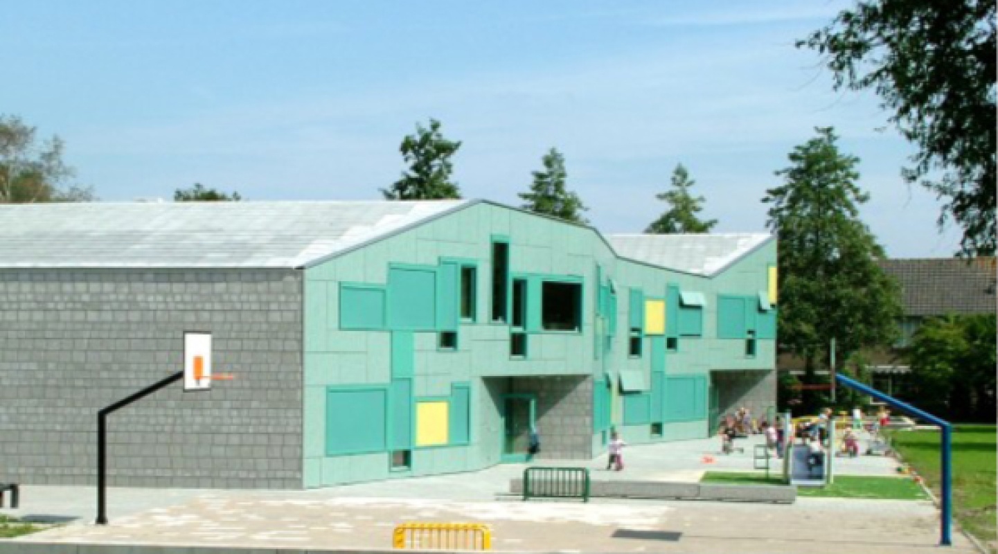 In opdracht van Gemeente Binnenmaas is dit scholencomplex gebouwd. In deze accommodatie zitten verschillende scholen qua basisonderwijs. Ook is er een peuterspeelzaal ondergebracht. Het idee van het schoolplein door laten lopen tegen de gevel geeft een leuk zicht.